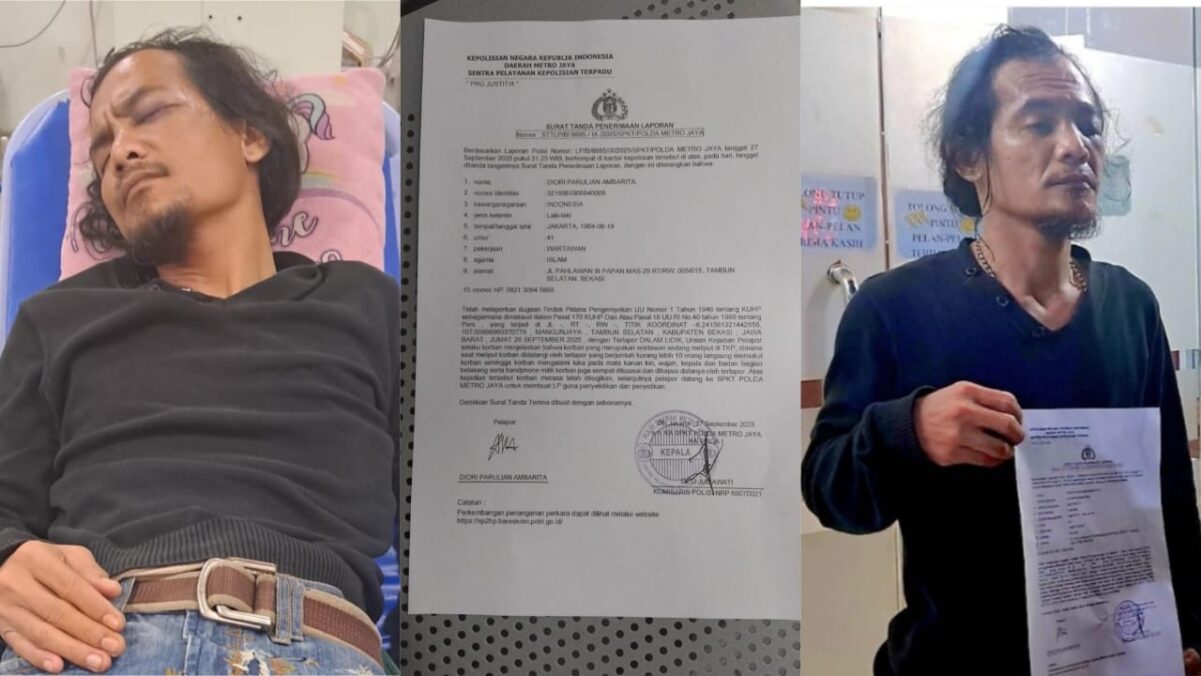 PETABALI, Jakarta – Kasus kekerasan terhadap jurnalis kembali mencoreng kebebasan pers di Indonesia. Seorang wartawan bernama Diori Parulian Ambarita resmi melaporkan dugaan tindak pidana pengeroyokan ke Sentra Pelayanan Kepolisian Terpadu (SPKT) Polda Metro Jaya, usai menjadi korban penganiayaan saat menjalankan tugas jurnalistik. Laporan dengan nomor: STTLP/B/6885/IX/2025/SPKT/POLDA METRO JAYA itu menyebutkan bahwa insiden terjadi pada Jumat, (26/9/2025) di wilayah Mangunjaya, Tambun Selatan, Kabupaten Bekasi.