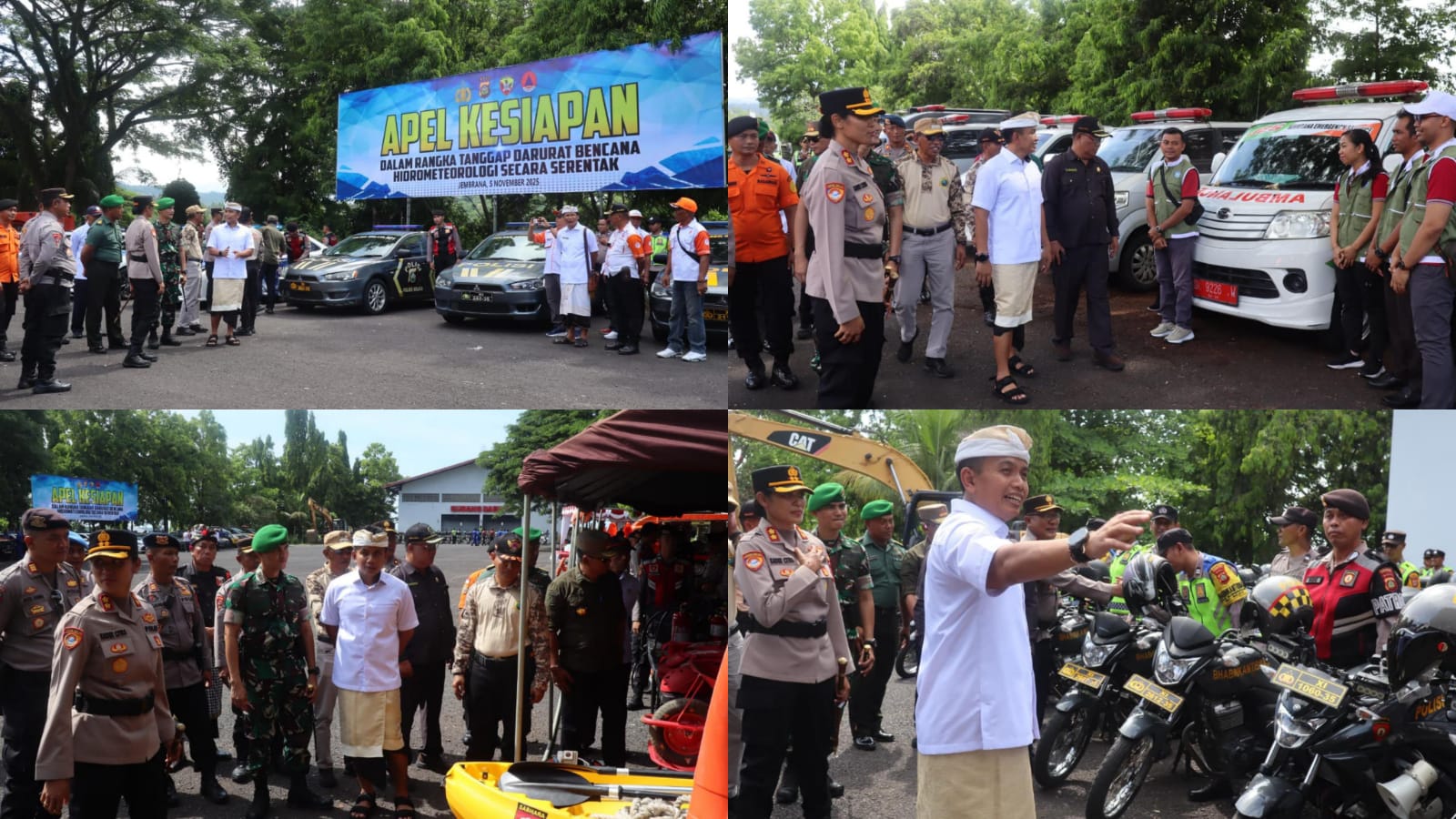 Sementara itu, Kapolres Jembrana AKBP Kadek Citra Dewi Suparwati menyampaikan bahwa kegiatan tersebut bertujuan untuk memastikan kesiapan seluruh personel dan sarana prasarana dalam menghadapi kemungkinan terjadinya bencana hidrometeorologi seperti banjir, tanah longsor, dan angin kencang yang kerap terjadi pada musim hujan. “Apel ini bukan sekadar seremonial, tetapi merupakan bentuk keseriusan kita dalam kesiapsiagaan menghadapi bencana, kolaborasi dan koordinasi lintas instansi menjadi kunci utama dalam meminimalisir dampak bencana terhadap masyarakat,” ujarnya.