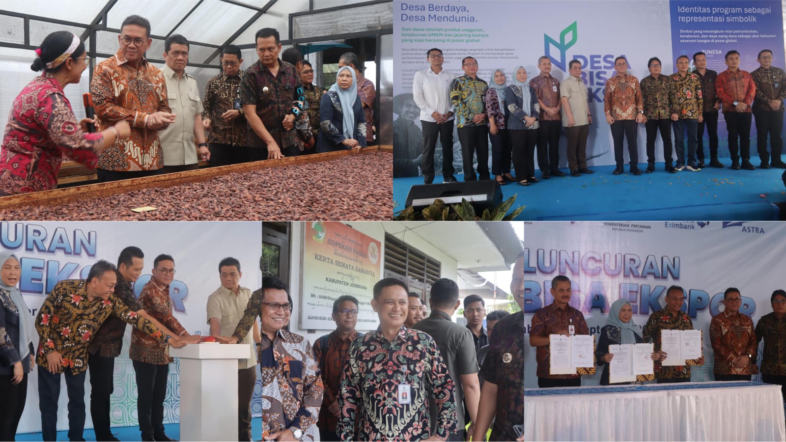 Lanjutnya, Menteri Perdagangan RI, Budi Santoso menegaskan bahwa program Desa BISA Ekspor merupakan kolaborasi antara Kementerian Perdagangan, Kementerian Desa, Kementerian Pertanian, Lembaga Pembiayaan Ekspor Indonesia (LPEI), serta sektor swasta seperti Astra. Tujuannya adalah memperluas akses ekspor bagi produk-produk unggulan desa. “Kita sudah memetakan ribuan desa di Indonesia, dan ada sekitar 700 desa yang sudah siap ekspor. Bagi yang sudah siap, kami akan fasilitasi dengan pembeli internasional melalui perwakilan dagang di 33 negara. Sementara desa yang belum siap, akan kami bantu dengan pelatihan, pendampingan desain, dan standarisasi produk,” ungkap Mendag Budi Santoso.