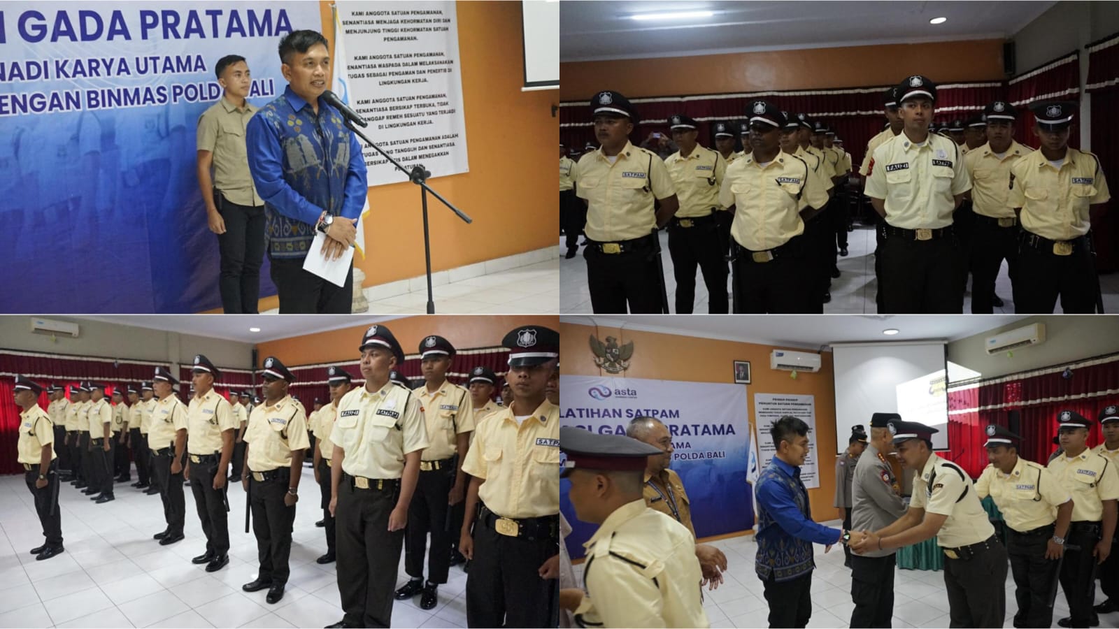 PETABALI, Jembrana – Pemerintah Kabupaten (Pemkab) Jembrana bekerja sama dengan PT. Asta Nadi Karya Utama menggelar Pelatihan Satuan Pengamanan (Satpam) Kualifikasi Gada Pratama, bertempat Senin (27/10) di Ballroom Hotel Batu Karu, Ubung, Denpasar Utara, Senin (27/10/2025). Pelatihan yang digelar secara gratis tersebut diikuti sebanyak 30 orang peserta, berlangsung selama 10 hari dan menjadi salah satu program Bupati dan Wakil Bupati Jembrana dalam meningkatkan kualitas Sumber Daya Manusia (SDM) lokal.