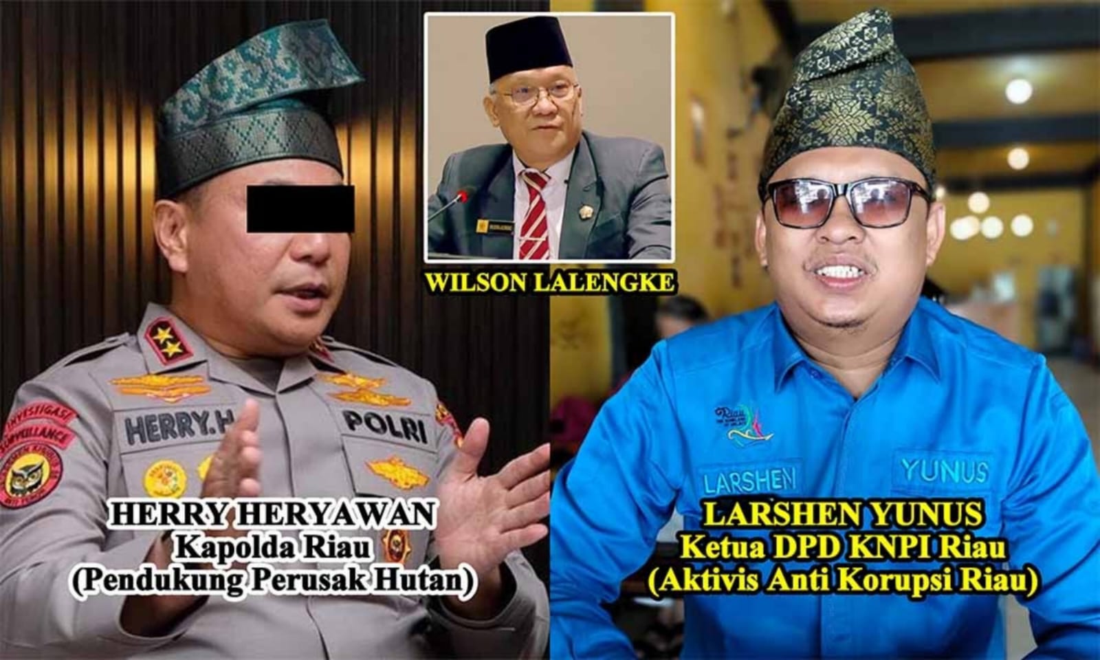 Terbaru, Ketua DPD KNPI Riau, Larshen Yunus, menyampaikan kepada Ketua Umum Persatuan Pewarta Warga Indonesia (Ketum PPWI), Wilson Lalengke, bahwa setelah gagal menggunakan jaringan preman GRIB, Kapolda Riau Herry Heryawan, menggunakan rekan kerja Larshen Yunus sendiri.